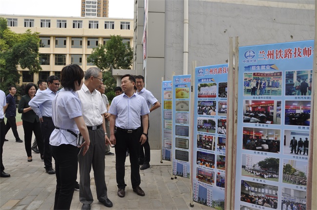 甘肃省人社厅原厅长贾廷权、兰州市人社局副局长臧晓平查看学生实习报告