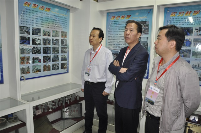 学院院长张龙与人社部副部长汤涛在中国技工教育图片展主题活动现场交流